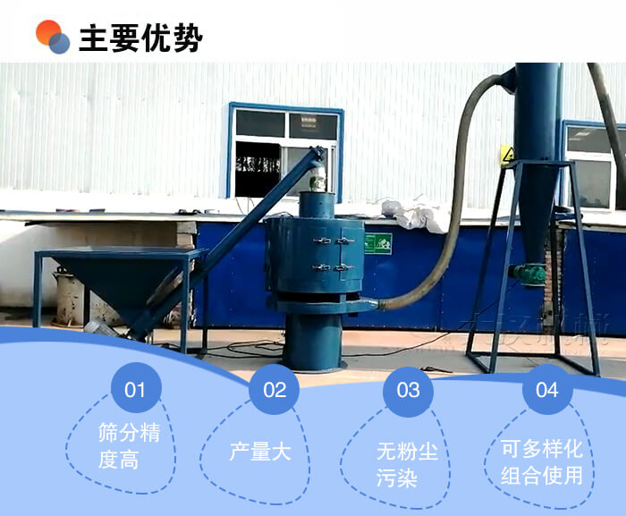 整個篩分程序在負壓半循環狀態下進行,無粉塵污染,篩網受旋風的沖刷,可自動清網,降低了篩網堵塞的風險;