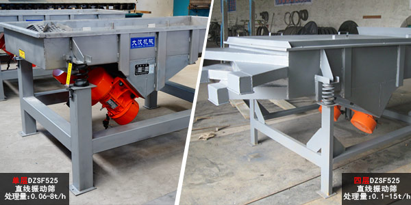 層數(shù)不同,篩分的精細度也就不一樣。對于同一型號的振動篩,層數(shù)越多,振動篩的處理量越大。例如:在相同型號、材質(zhì)等情況下,1層DZSF525直線振動篩處理量為0.06-8t/h,而4層DZSF525直線振動篩處理量為0.1-15t/h,所以4層DZSF525直線振動篩相對1層DZSF525直線振動篩價格會偏貴一些。但是并不是代表層數(shù)越多,產(chǎn)量越高,多層直線振動篩多可以做6層,其激振力傳導(dǎo)效果較好的一般是在3-4層,超過6層不建議添加。