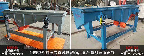 新鄉(xiāng)大漢多層直線振動篩常規(guī)型號有DZSF520、DZSF525、DZSF1020、DZSF1025、DZSF1030等,還可根據(jù)客戶的要求來特殊定做,由于不同型號的多層直線振動篩,其產(chǎn)量都有所差異,例如:在相同情況下,2層的DZSF520直線振動篩產(chǎn)量為0.05-5t/h,而2層的DZSF1020直線振動篩處理量為0.12-20t/h,所以2層的DZSF520直線振動篩價格會比2層DZSF1020直線振動篩更便宜。由此可見,不同型號的多層直線振動篩價格更具差異化。