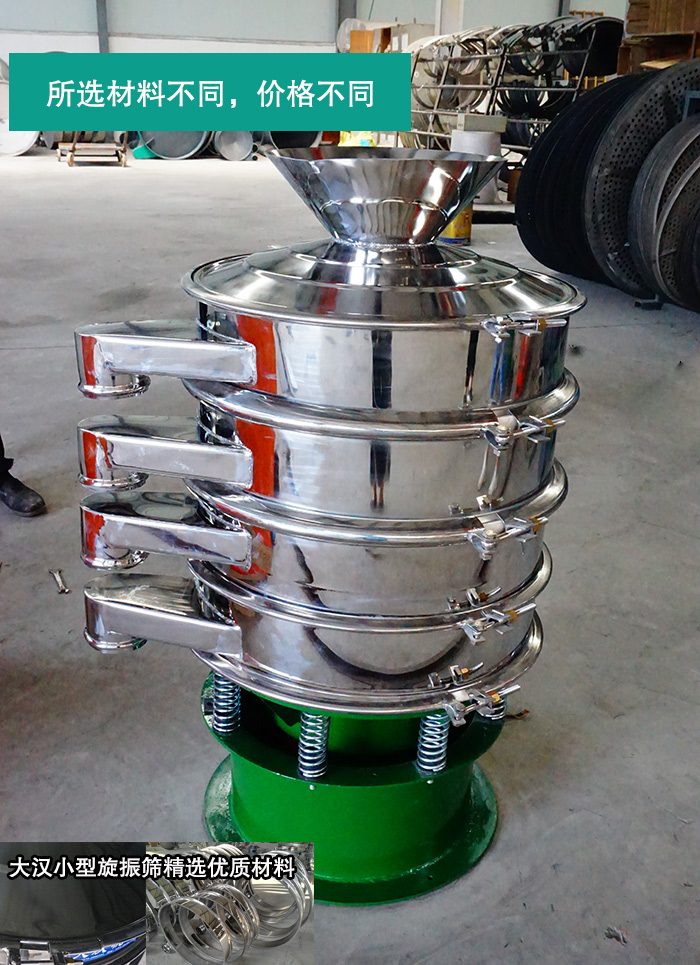 目前來看市場上的小型旋振篩廠家較多,在設備設計、制造過程中會有所不同,且所選用的原材料也會不同,因此價格方面肯定存在差異。
