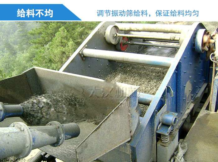 措施:當遇到這種情況一般應減輕振動篩負荷,并清理篩面,及時解決篩孔堵塞問題。