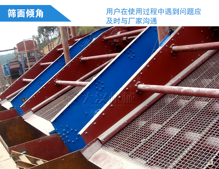 篩面的傾角影響顆粒進入篩孔的角度,也影響顆粒沿篩面運動的速度,在篩面的停留時間和顆粒通過篩面的概率,篩面傾角控制不好也會影響振動篩的篩分質量。