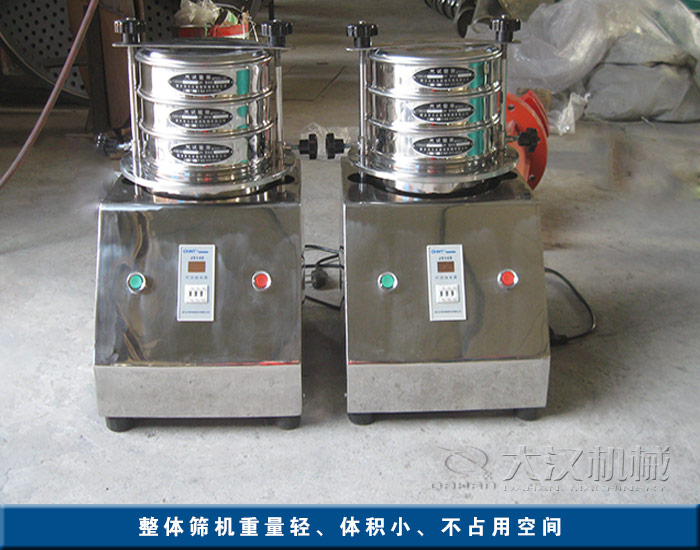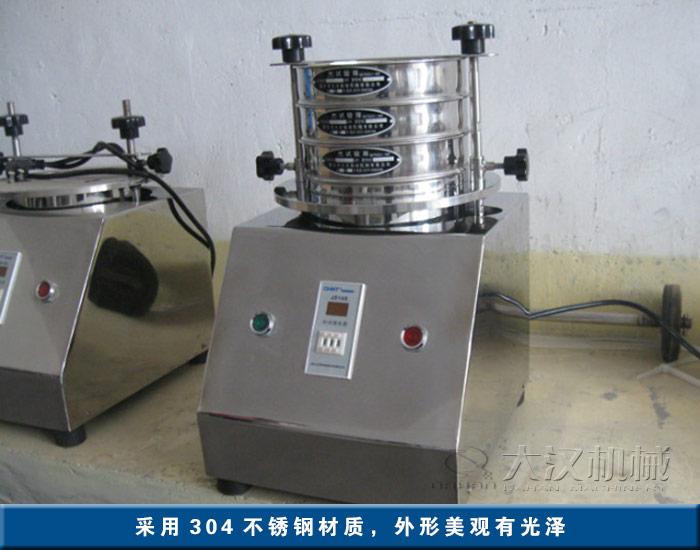 試驗篩機以立式振動電機作為整機振動源,通過振動電機帶動上部振動盤振動,再通過振動盤傳導至安放在振動盤上部的篩框上,然后由需要檢測目數的篩框把小于篩網孔徑的物料顆粒篩分至下層篩框,經過這樣的篩分程序,使每層試驗篩內只留相同粒度的物料,達到不同粒度的分離并確定此物料的粒度組成,使篩框中的物料能夠得到非常有效地過濾、分級、篩分。