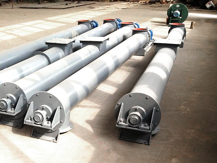 管式螺旋輸送機機殼為圓管型,所以又叫圓管螺旋輸送機,可水平或傾斜輸送,適合于建材、化工、電力、冶金、煤炭、糧食等行業,適用于水平或傾斜輸送粉狀、粒狀和小塊狀物料,如煤、灰、渣、水泥、糧食等,物料溫度小于 200 ℃ .螺旋機不適于輸送易變質的、粘性大的、易結塊的物料。