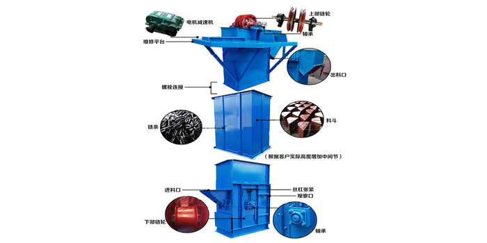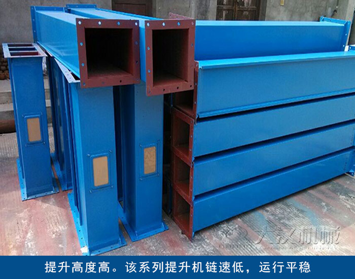 5、提升高度高。該系列提升機鏈速低,運行平穩(wěn),且采用用板鏈?zhǔn)礁邚姸饶湍ズ辖痄撴湕l,因此可達較高的提升高度(高度40M);